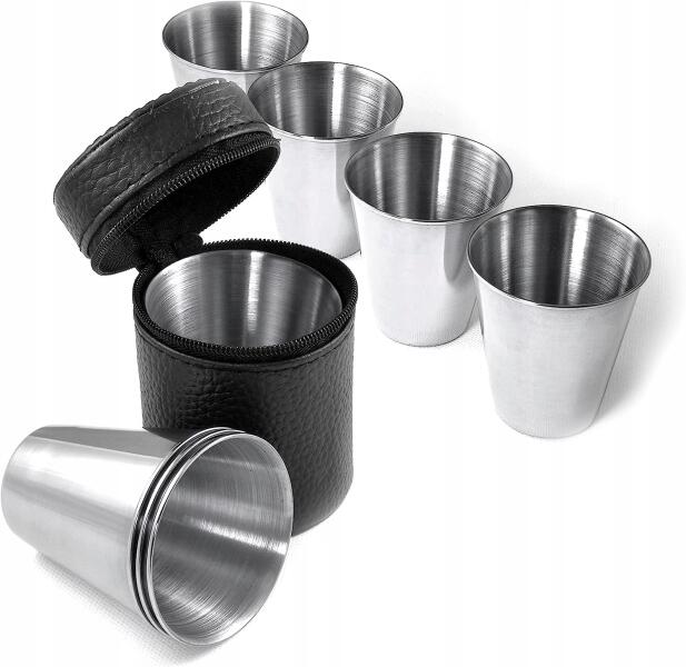 1Mcz Fém Pálinkás Pohár Készlet 6db Bőr Tokban (DSP0107)
