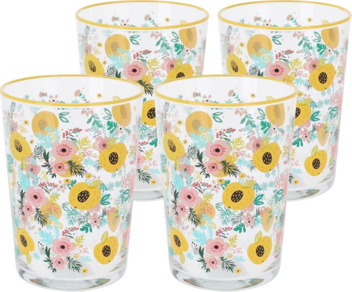4-Home Flowers & Fruits 4 db-os pohárkészlet 510ml , sárga, sárga
