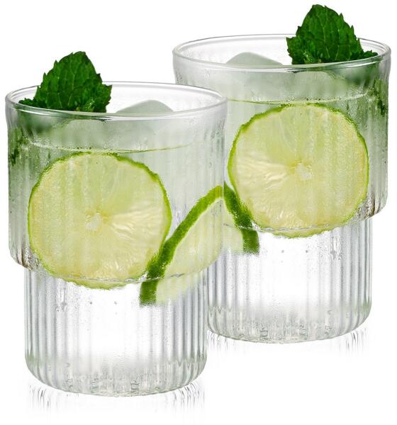 Élvezze a stílust és a minőséget minden kortyban egy olyan pohárkészlettel, amely lenyűgöző eleganciával és modern dizájnnal rendelkezik. A poharak tartós boroszilikát üvegből készültek, és finom függőleges barázdákkal díszítettek, amelyek egyedi és kifinomult megjelenést kölcsönöznek nekik. Ideális ünnepi alkalmakra és mindennapi használatra hideg vagy forró italok tálalásakor.