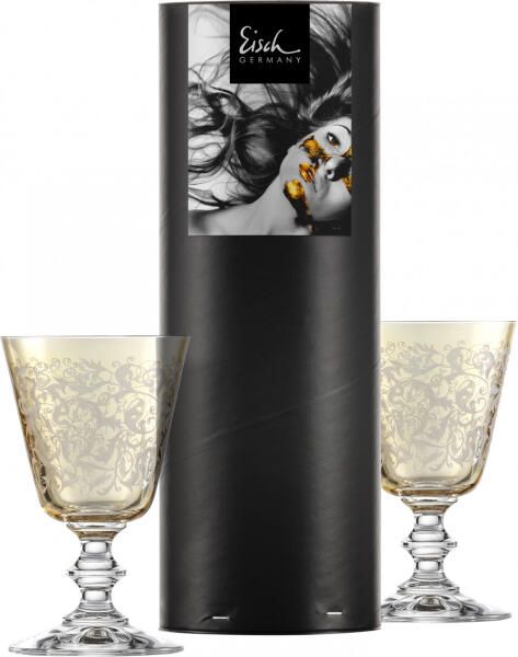 # 2 EISCH TOULOUSE fehérboros pohár finom borostyánból, finom, díszes gyémántgravírozással, ajándékcsőben.
