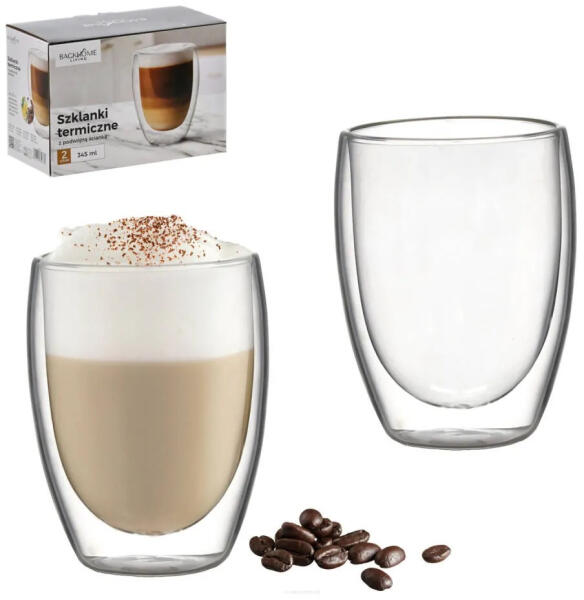 EXTRALINK Két Darab Duplafalú Termohőálló Üvegpohár, 345 ml
