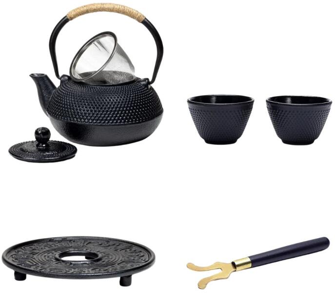 Szett Tetsubin japán 100% öntöttvas teáskanna 600 ml, 2x csésze, matrac, tartó