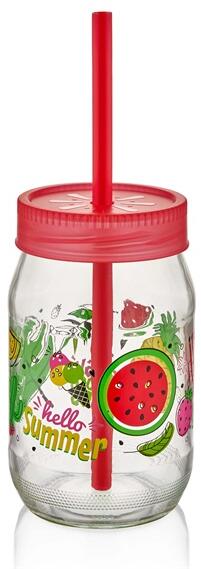 LUXPLASTIC IRIS C-00162 Spring üvegpohár szívószállal 380ml, piros, zöld vagy sárga színű (C-00162) - bestbyte