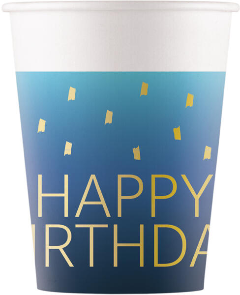 Procos Kék színű szülinapi "Happy Birthday" feliratú papírpohár 8db-os szett 200ml (96621)