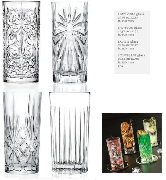 MIXOLOGY HB üdítős pohár set 4 db RCR Melodia 36 cl, Tattoo 37 cl, Oasis 36 cl, Timeless 44 cl Minden RCR termék Luxion Eco kristályüvegből készült, amely a legmagasabb minőségű anyag a mai üveggyártásban. A gyártás során semmilyen káros anyag nem kerül a levegőbe, a talajba és a vizekbe, a szükséges energiát 100% megújuló forrásokból állítják elő.