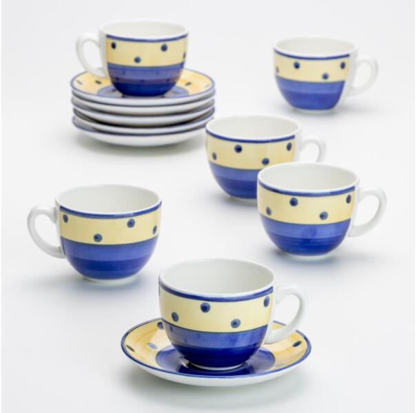 A kávés készlet 6 db kerámia csészét és 6 db csészealjat tartalmaz.