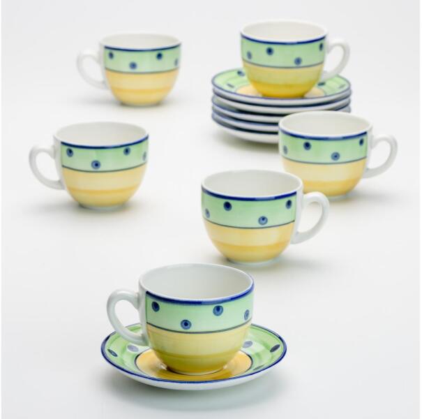 A kávés készlet 6 db kerámia csészét és 6 db csészealjat tartalmaz.
